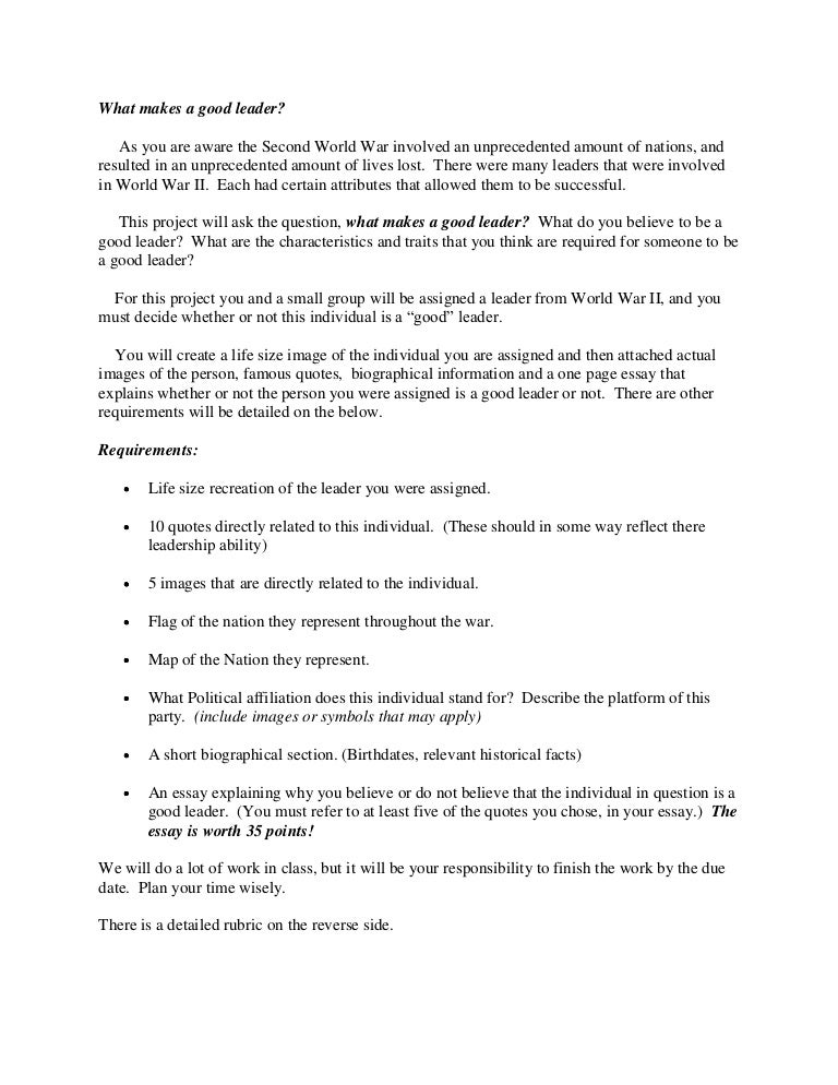 What makes a good leader essay. The contributing factors to being a good leader when involved in racket team and individual activities in this essay i will look at what makes a good leader. When working on what makes a good leader essay students should follow certain basic steps. Exploring what makes a successful leader leadership essay. Different styles of leadership and how you will have to change your leadership styles to suit different activities.